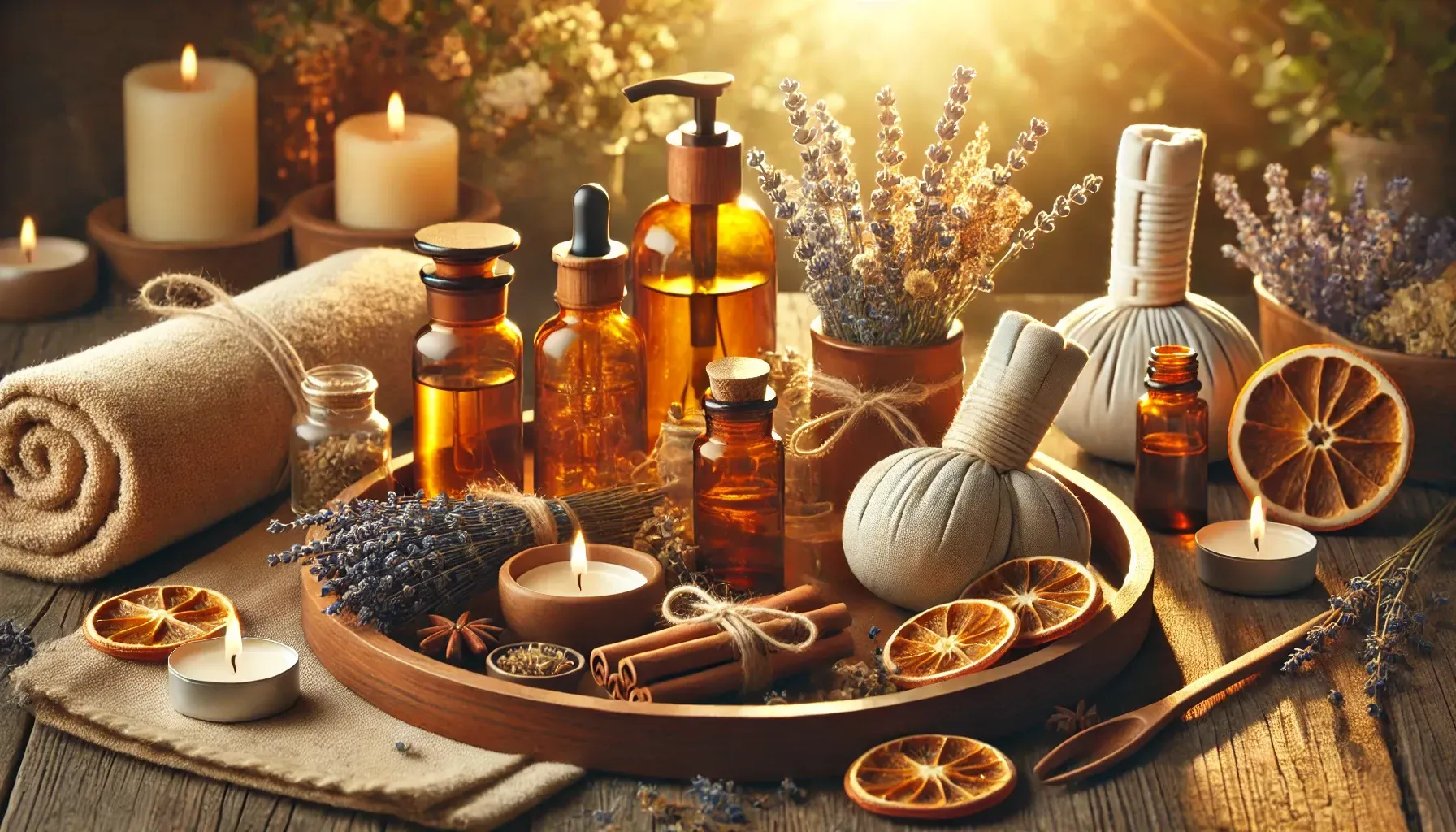 - Plantas y aceites esenciales · El romero estimula y purifica, la lavanda calma, el jazmín abre la sensibilidad emocional, el ylang ylang regula la energía vital, el jengibre y la cúrcuma revitalizan.