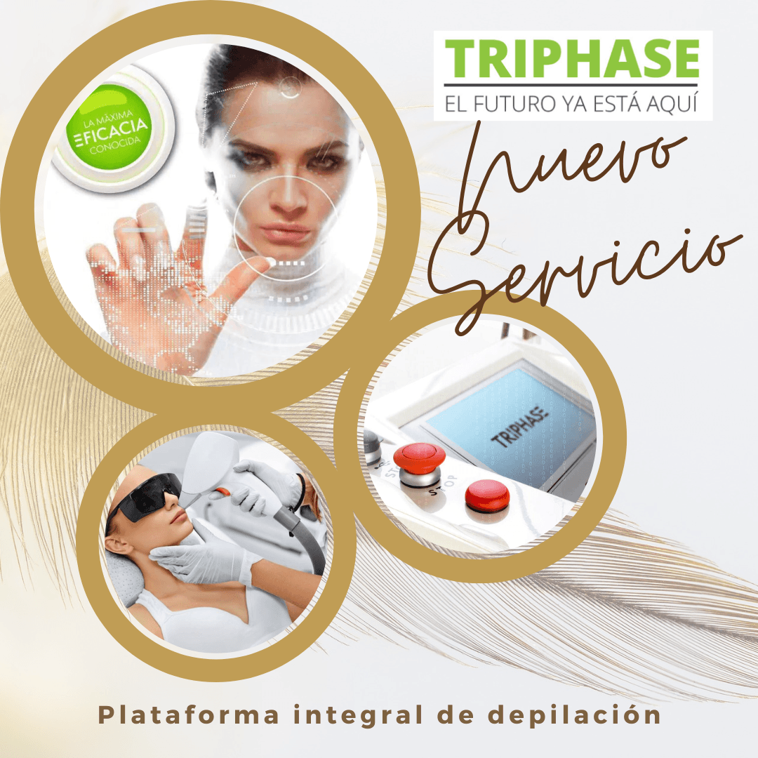 TRIPHASE és una Plataforma Integral de Depilació que combina l'aplicació de Làser (Neodimio Yag), Fotodepilació i Diode de Ràfega a la mateixa sessió i zona.